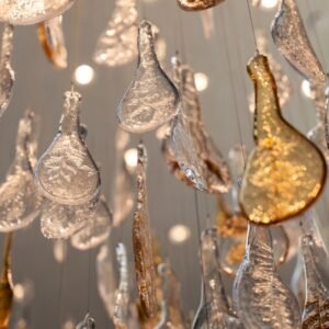 The lighting installation builds upon our signature “Herbarium” design concept. For the building, the iconic Ghaff tree—a beloved symbol of the UAE—served as the central inspiration. Real branches and leaves were carefully imprinted into molten glass, preserving the authentic beauty and essence of Emirati nature.
